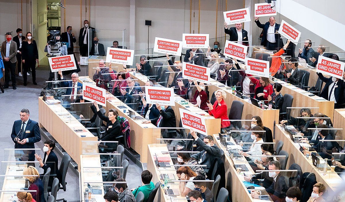 Die Koalition setzte sich gegen die Angriffe von Rot-Blau durchaus zünftig zu Wehr. ÖAAB-Generalsekretär Christoph Zarits meinte in Richtung SPÖ. Als sie beim selben Beschluss dabei gewesen sei, sei das pipifein gewesen, nun wo sie nicht dabei sei, sei es Teufelswerk. Wie die Sozialdemokraten die “Hacklerregelung” (mit Abschlägen) beschlossen hatten, seien sie noch staatstragend gewesen: “Heute seid ihr eine populistische Partei.”