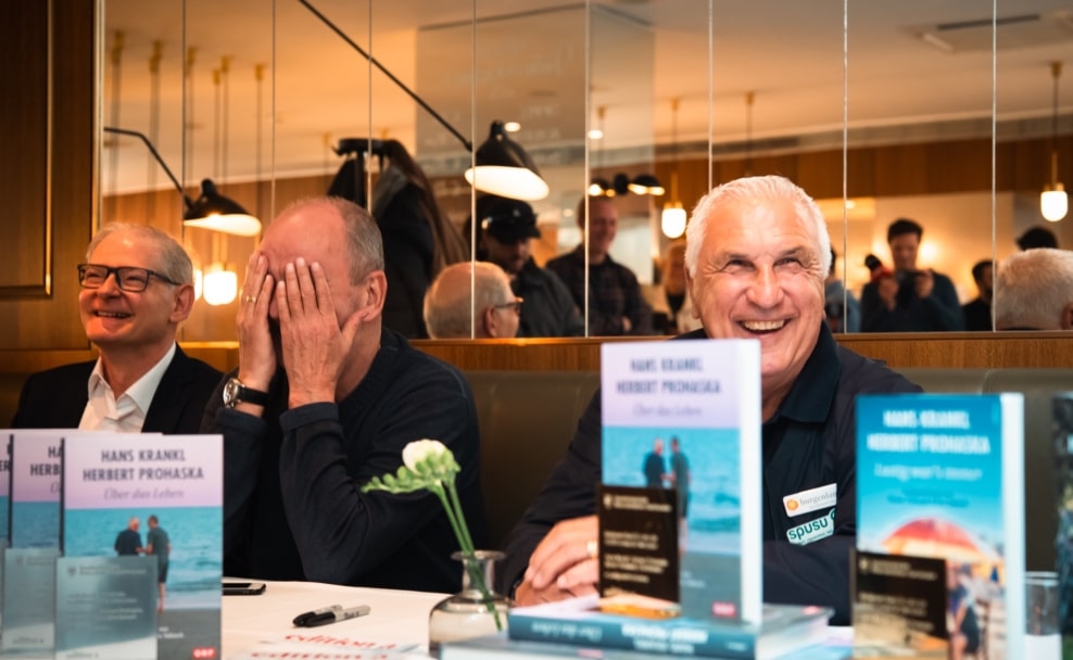 Zwei Fußballlegenden standen im Mittelpunkt einer untypischen Ehrung – diesmal nicht als Sportler, sondern als Buchautoren: Hans Krankl und Herbert Prohaska wurden am Mittwoch in der Brasserie des „The Guesthouse“ in der Wiener Innenstadt mit dem Platinbuch des Hauptverbandes des Österreichischen Buchhandels ausgezeichnet. Anlass war der Verkaufserfolg ihres Buches „Über das Leben“, das die Marke von 25.000 verkauften Exemplaren überschritten hat.