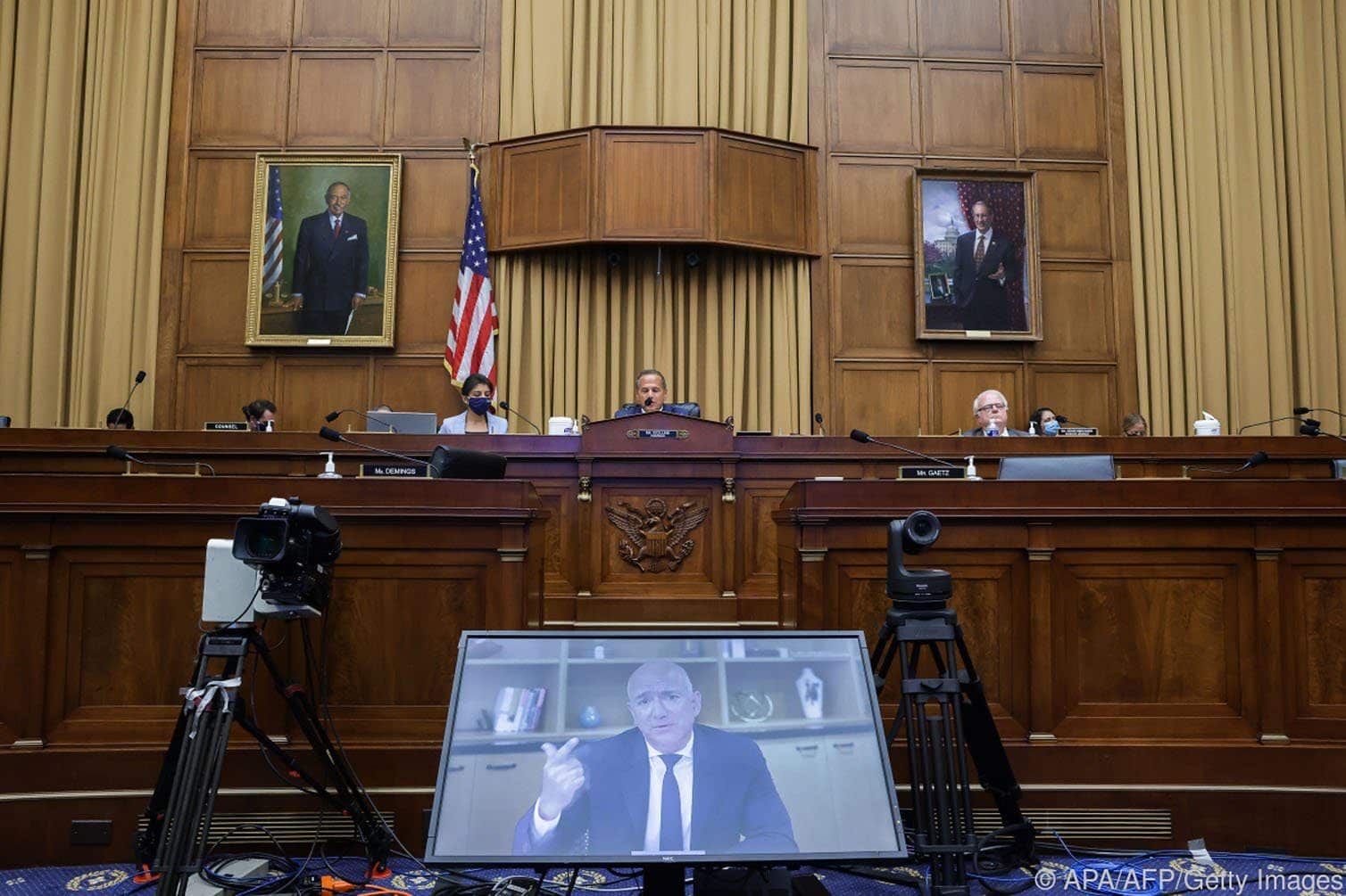Die vier Top-Manager waren per Videokonferenz zu der Anhörung in Washington zugeschaltet. Die Corona-Krise drückte dem Termin ihren Stempel auf. Die Konzernchefs mussten versichern, dass ihnen hinter der Kamera keine Mitarbeiter halfen. Die Abgeordneten mussten außerhalb ihrer Redezeit Masken tragen. “Setzen Sie ihre Maske auf!”, wurden sie mehrfach ermahnt. Bezos unterlief indes der gleiche Fehler wie vielen Heimarbeitern in der Corona-Krise: Er redete bei einer Antwort drauflos, ohne die Stummschaltung zu deaktivieren.