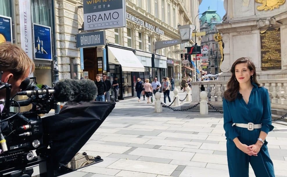 Eva May moderiert die Wien-Einspieler für die Eröffnungsshow | © CGTN
