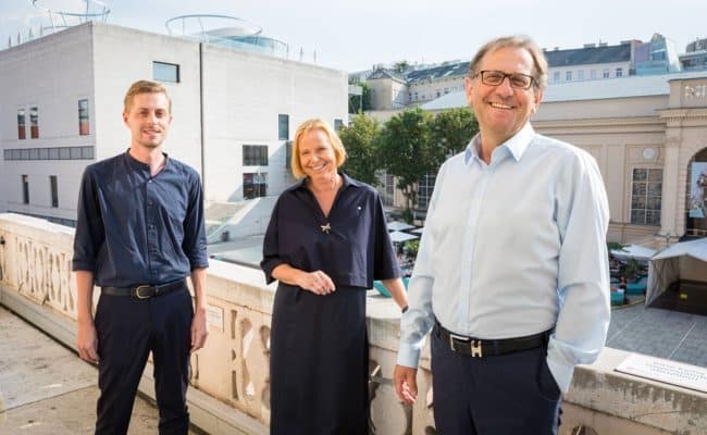 Christian Strasser, Petra Stolba und Andreas Vierziger (Kurator “So klingt Österreich”) stellen App von Artivive vor | © Christian Lendl