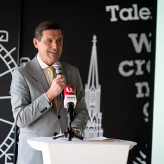 Nach der Begrüßung durch Direktor Dominique Meyer im Rahmen der Matinee übergab Rainer Seele, Generaldirektor der OMV, einen Scheck in der Höhe von EUR 50.000 an das Kinderhospiz MOMO. Die Spende wurde dankend von Leiterin Martina Kronberger-Vollnhofer entgegengenommen.